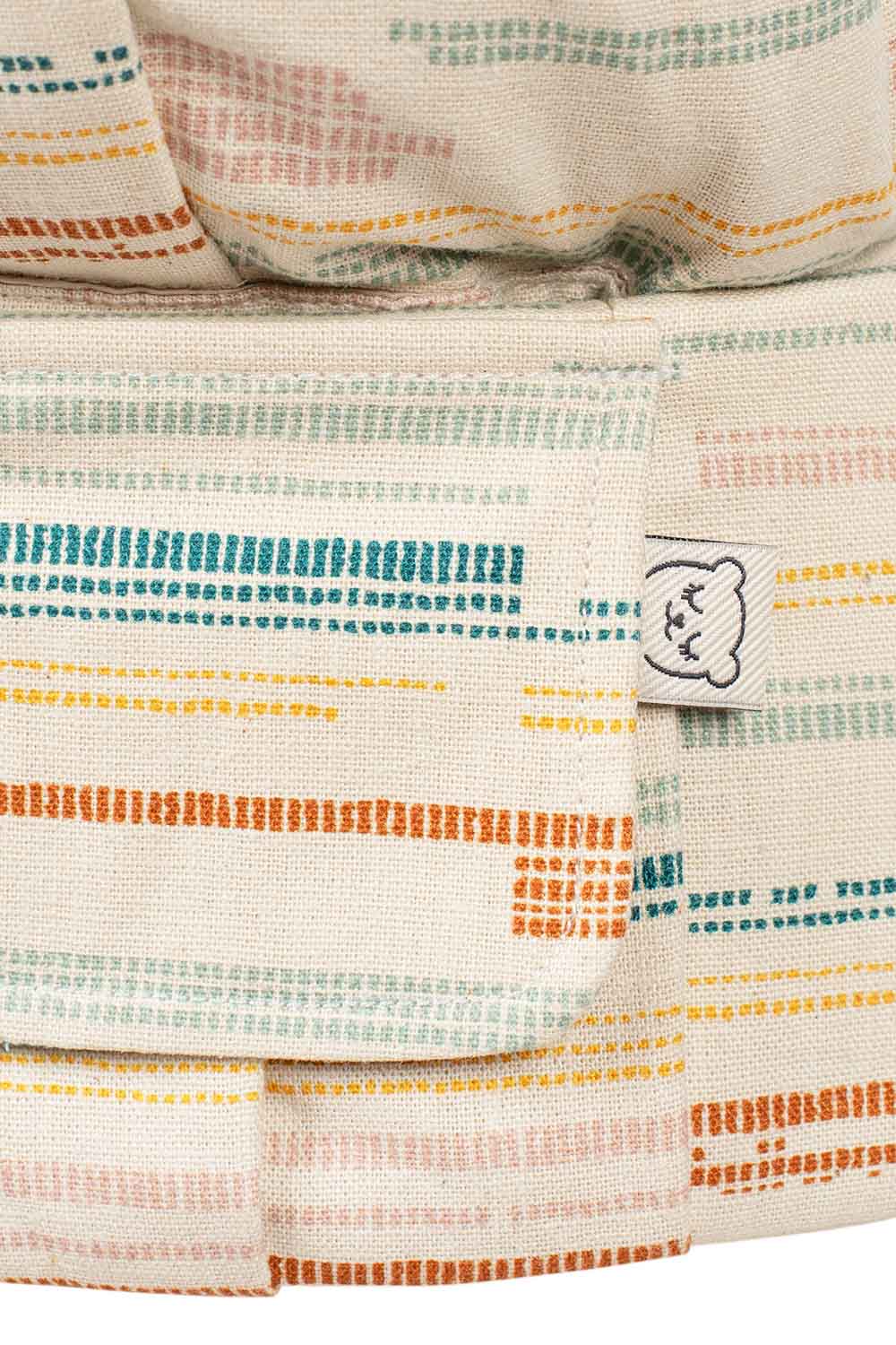 In a neutral cream fabric with stripes of classic colors, "Geode" is a bold addition to our Hemp collection of carriers.